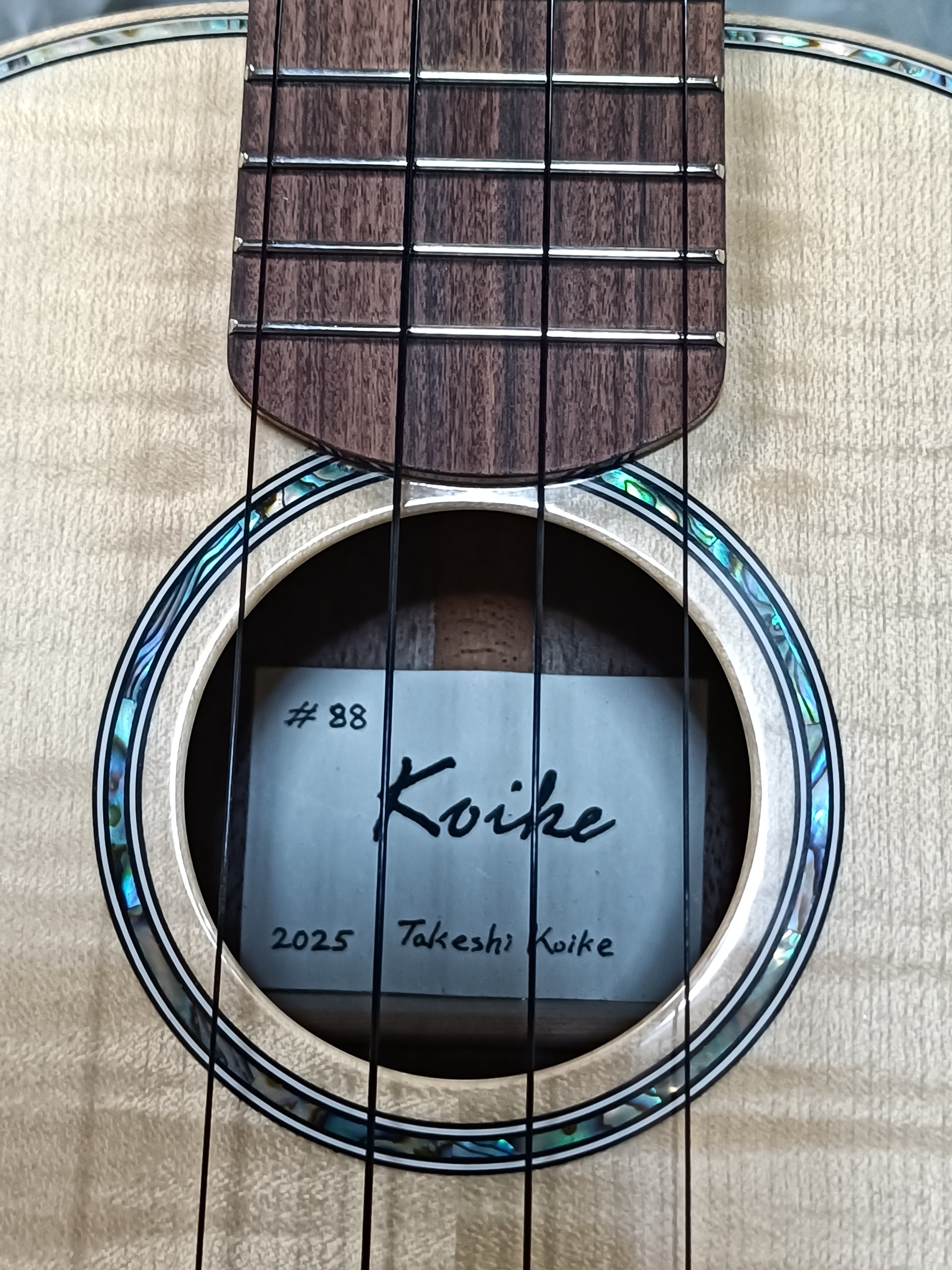 ホワイトシカモアのトラ目とメキシコ貝のパーフリングがとても際立ちます。仕上げにポリウレタン塗装を採用しているので演奏の際の傷がつきにくくメンテナンスが容易になっています。